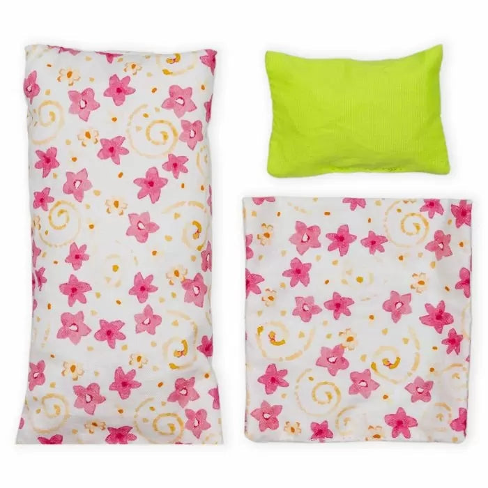 - Nestled in cozy floral bedding inside a keepsake box illustrated with “Let’s Wander Together”