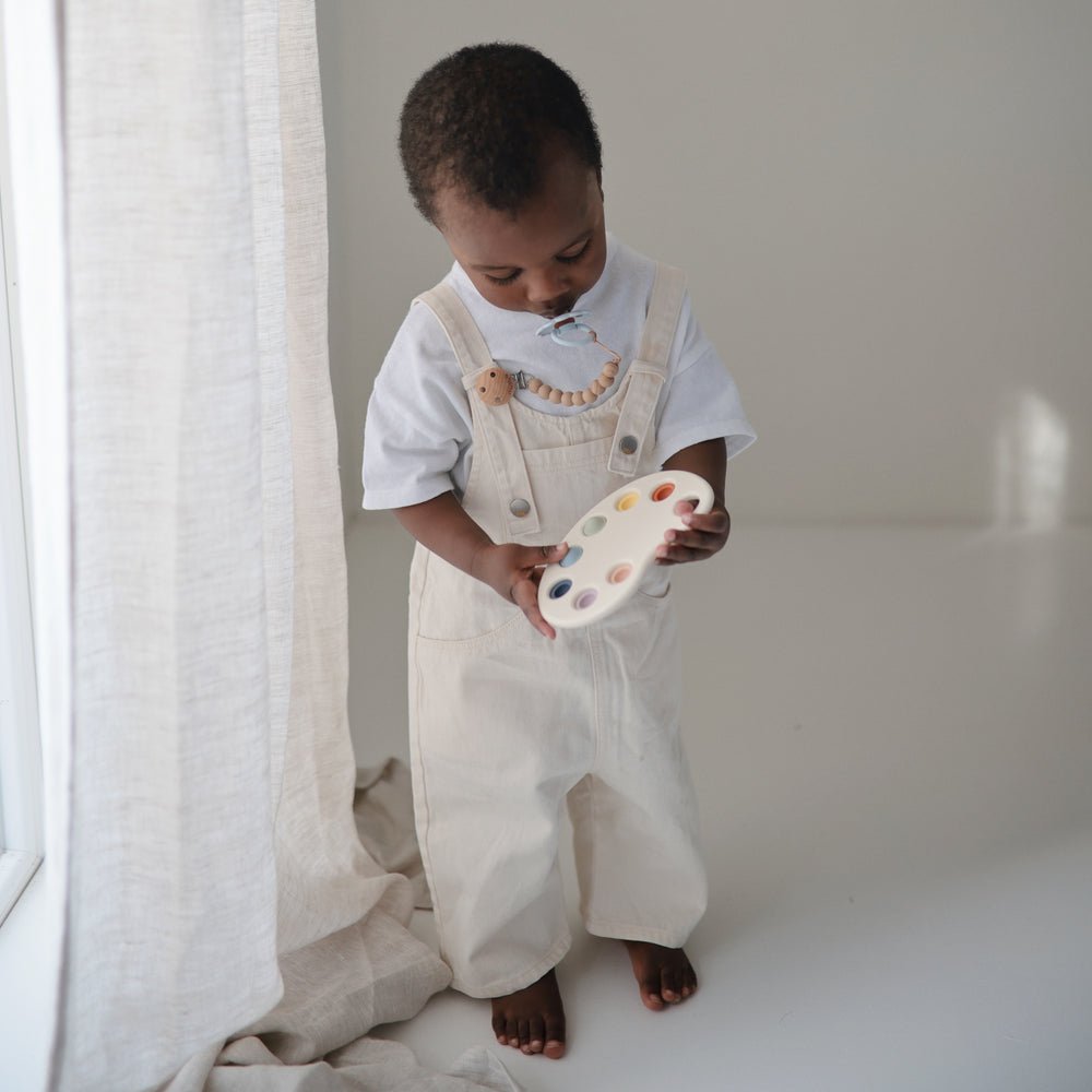 Mushie's press toy is a cute and fun toy inspired by art and paint palettes, made for little hands to hold. The toy promotes fine motor skills and encourages sensory exploration with bubbles that can be pushed and popped. The frame is made of plastic and features food-grade silicone bubbles in soft colours. This sensory toy will provide endless hours of fun for the little ones.