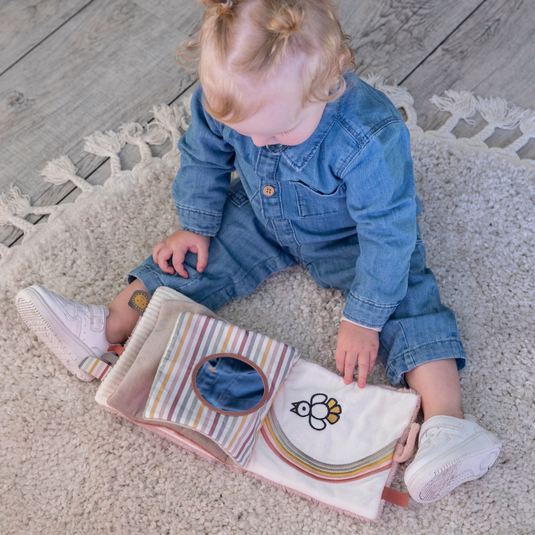 The soft book features different labels to touch, as well as a mirror, squeaker and crinkly toys to explore. The activity book not only stimulates your little ones senses, but it is also good for the development of their hand-eye coordination.