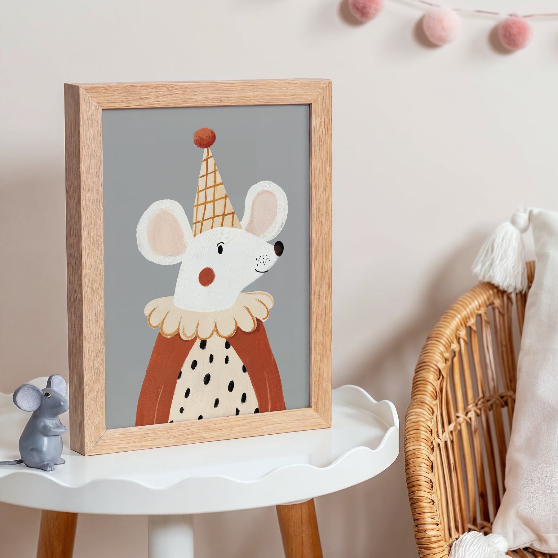 This playful Mabel & Fox art print features a charming illustrated circus mouse. Perfect for nurseries and playrooms, it brings a fun yet stylish feel to your space and makes a beautiful gift for little ones.