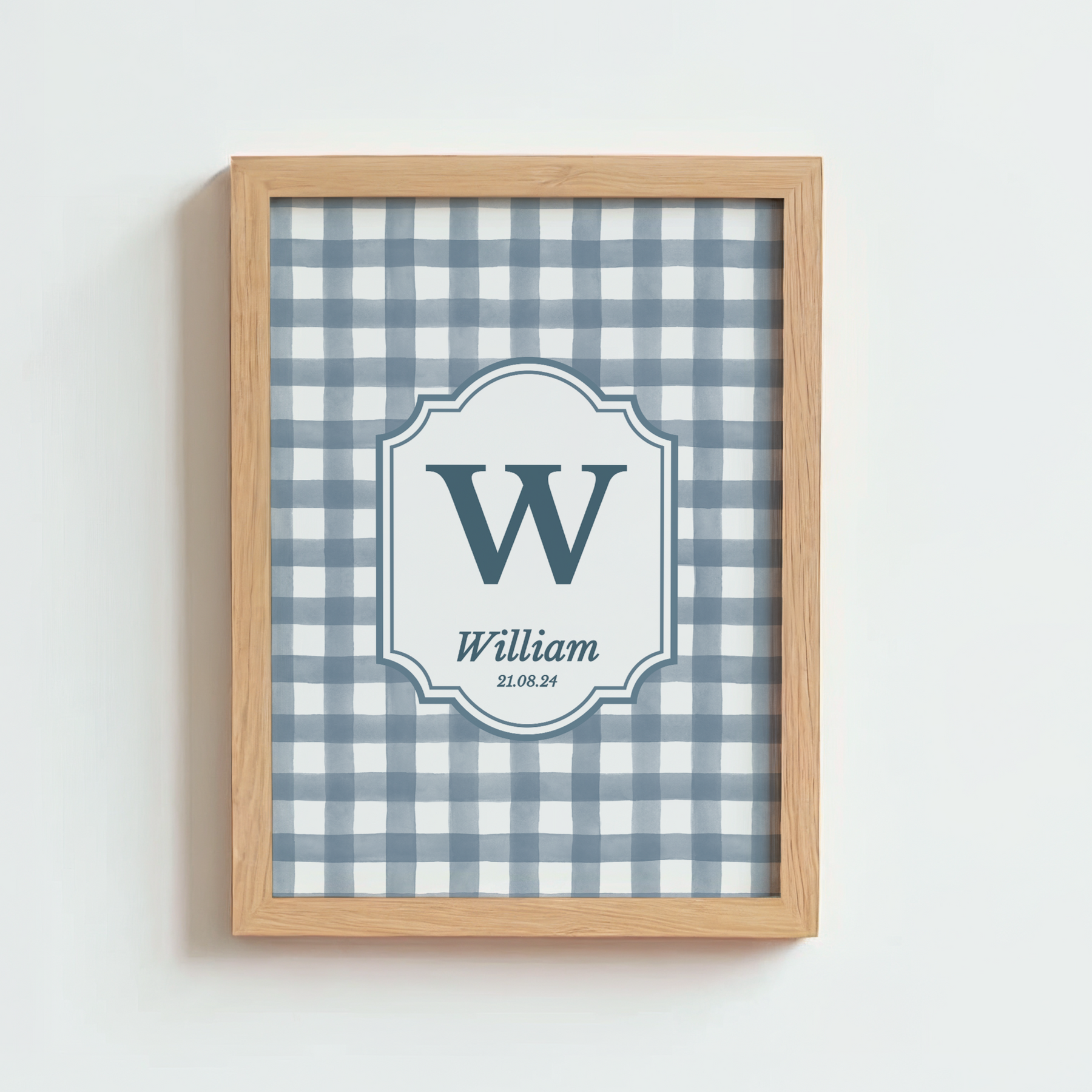 Mabel & Fox - Personalised Art Print - Blue Gingham