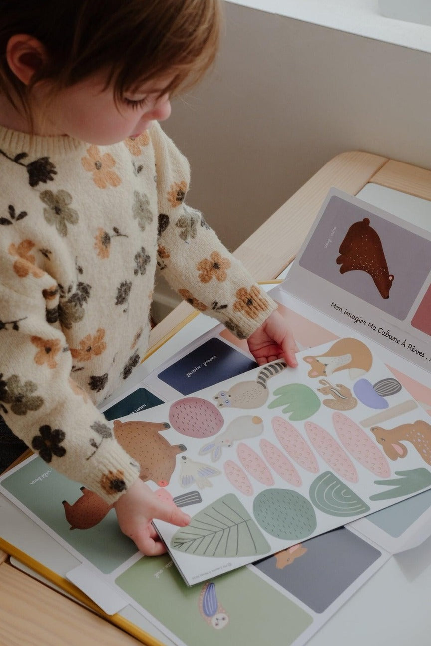A game as poetic as it is playful, which stimulates the imagination while introducing nature to little curious minds. 🌲🐿️ 39 magnets (2 pre-cut A4 magnetic sheets. The shapes should be gently detached from the backing). + 1 bilingual picture book (French/English) of forest animals, to cut out.