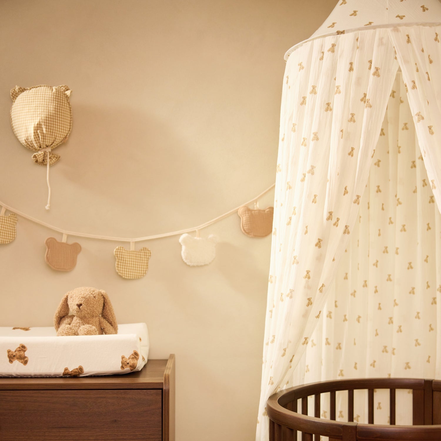 The sweetest little friend is back — now in mini. This beautiful canopy features the beloved Mini Teddy Bear print, showcasing an all-over pattern of tiny teddy bears set against a calm ivory background. A soft and charming addition to any nursery.