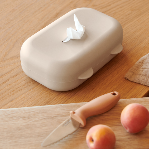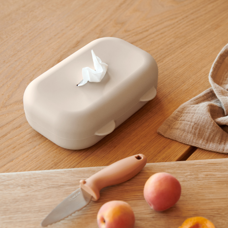 Get ready for cuteness overload with the Liewood - Emi Wet Wipes Cover - Sandy! Perfect for the nursery and home, this silicone cover features adorable animal details. With a convenient top opening, it'll keep your wipes moist and ready for use. Plus, its flexible and durable design makes it reliable for daily use. A must-have for any parent or house