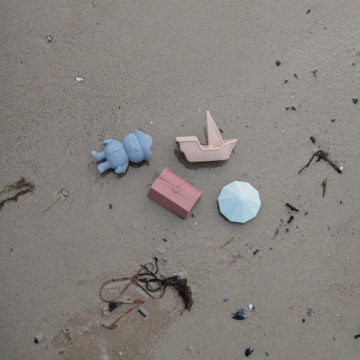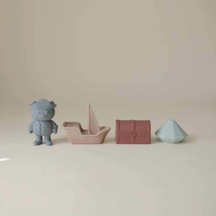Featuring a charming pirate bear, treasure chest, ship, and sparkling jewel, it's designed to spark imagination and endless splashing fun. Crafted from soft, non-toxic silicone that's gentle on little hands, each toy cleverly splits into two pieces for effortless cleaning and quick drying, keeping everything fresh and mold-free.