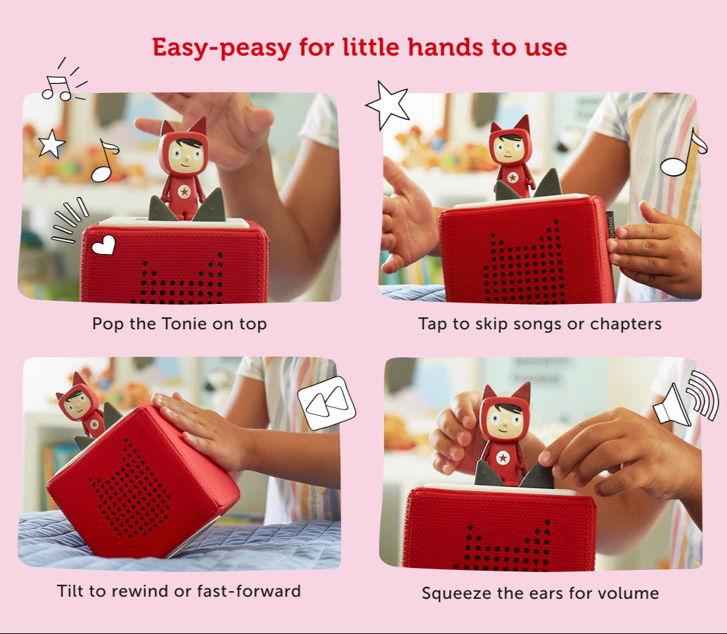 Your little one can be transported into their own adventure with their Tonies character. Each figure magnetically attaches to the Toniebox allowing them to independently choose and switch between a variety of audio adventures.
